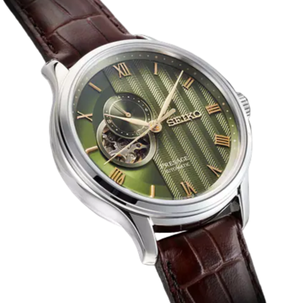 The SEIKO Presage SRPL97J1 is a Taiwan-exclusive automatic watch that blends Japanese craftsmanship with the poetic beauty of Taiwan’s seasonal landscapes. Powered by the 4R39 open-heart movement, this model showcases a scallion-green dial inspired by the vibrant hues of Taiwan’s bald cypress trees, symbolizing life, change, and resilience.